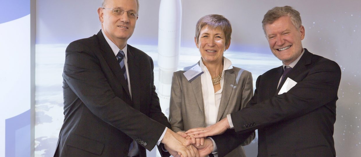Photo : Jean-Yves Le Gall (Président du CNES), Corinne Lanièce (DG de Pôle VINCI Energies France) et François Darchis (Membre du Comité Exécutif d’Air Liquide) ©AL_LaurentLelong